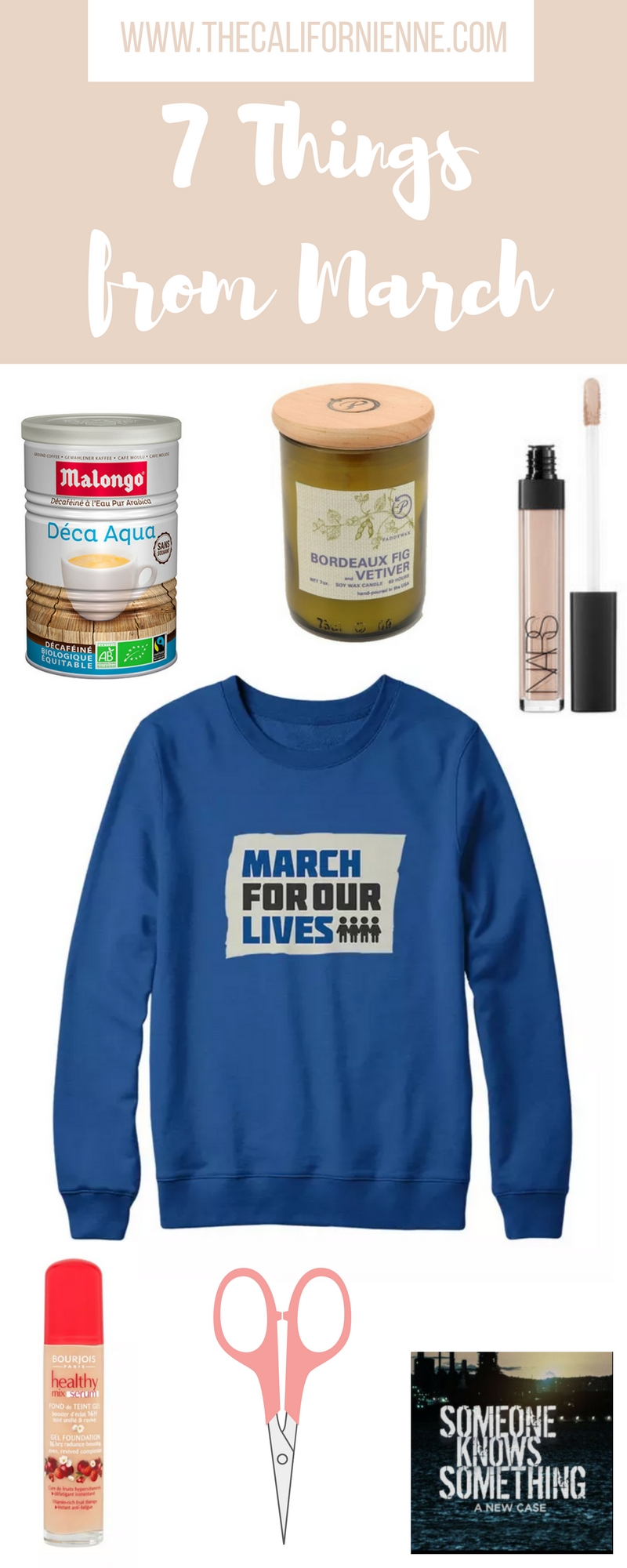 Candle Figuier || Decaf Coffee SIMILAR || Concealer NARS || March for Our Lives OFFICIAL || Foundation Bourjois || Haircut || Podcast Someone Knows Something