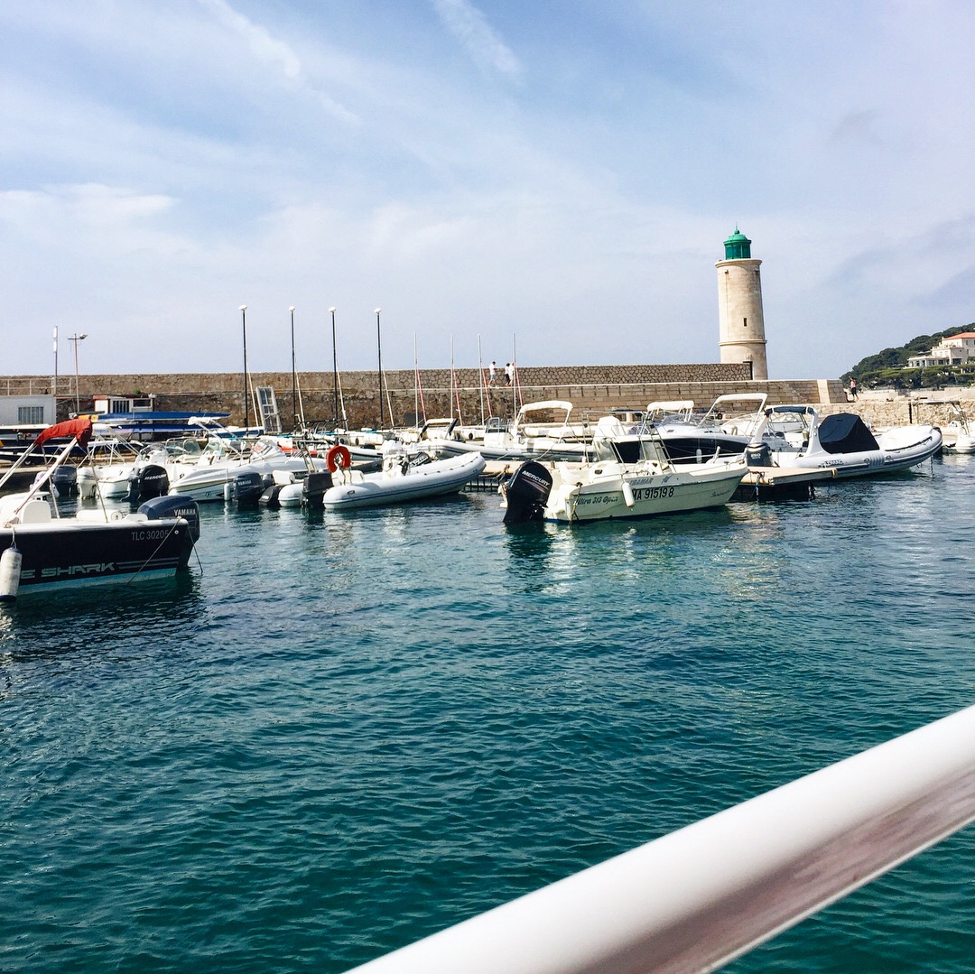 While we were there, we took a boat tour around the bay. It was so beautiful I cried, literally. It had been a dream of mine to see the beautiful turquoise water of the Med. There are at least 30 boats that do loops like this, with long bench seats. All the tour guides are laid back and hilarious. We enjoyed our tour however, it was in French. I’m not sure how things would go in English