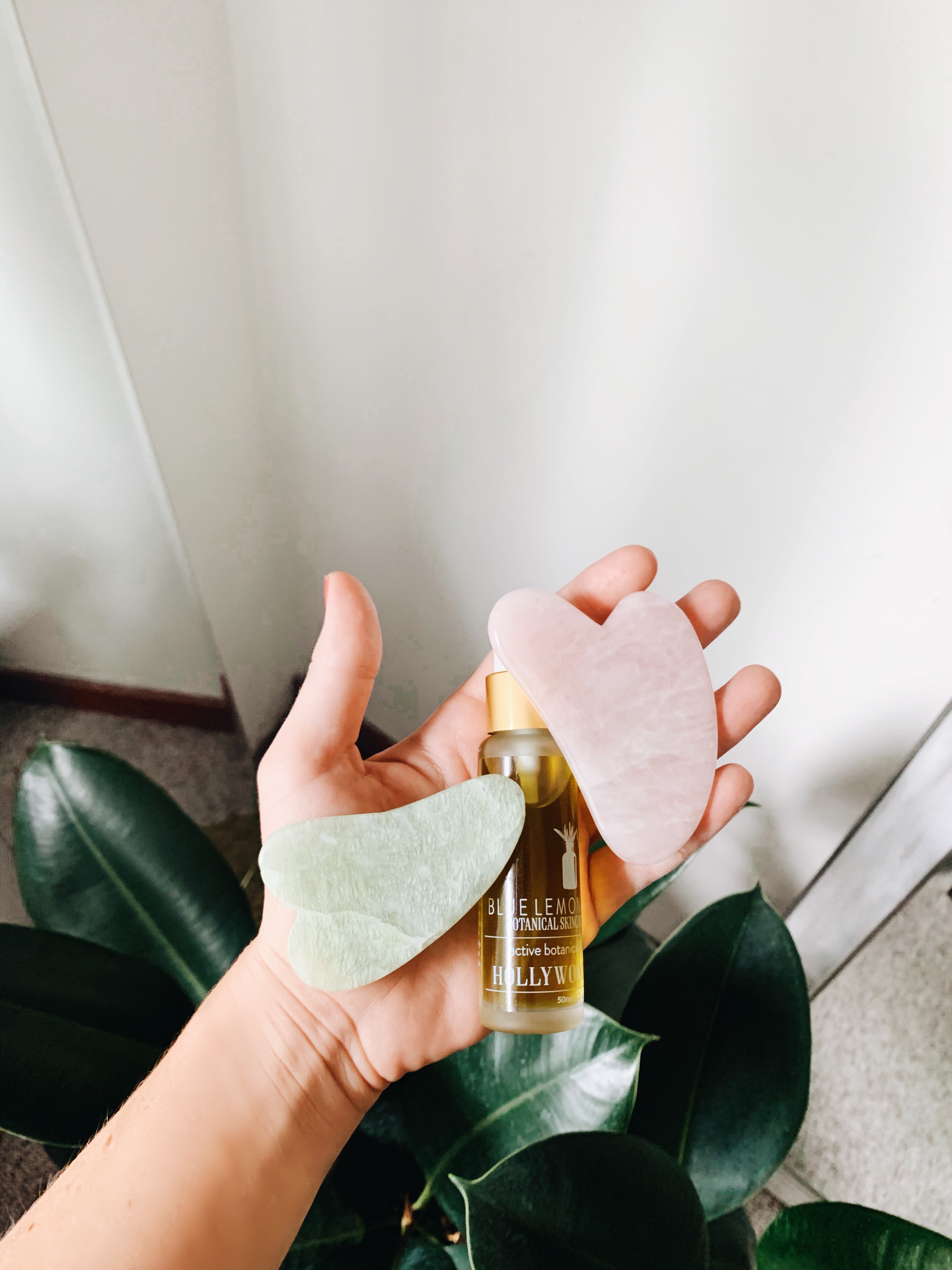 Gua Sha tools used to be made from bones to porcelain, but the most popular, modern ones are made from crystals. Mine are made of rose quartz and jade. When deciding which pretty little skincare tool to buy, I say Gua Sha over crystal roller all day.