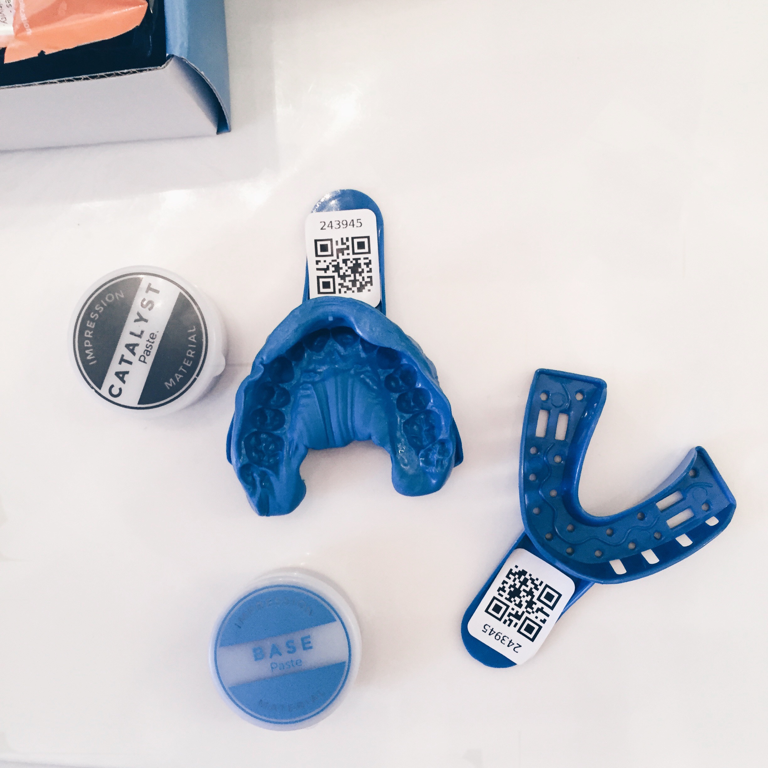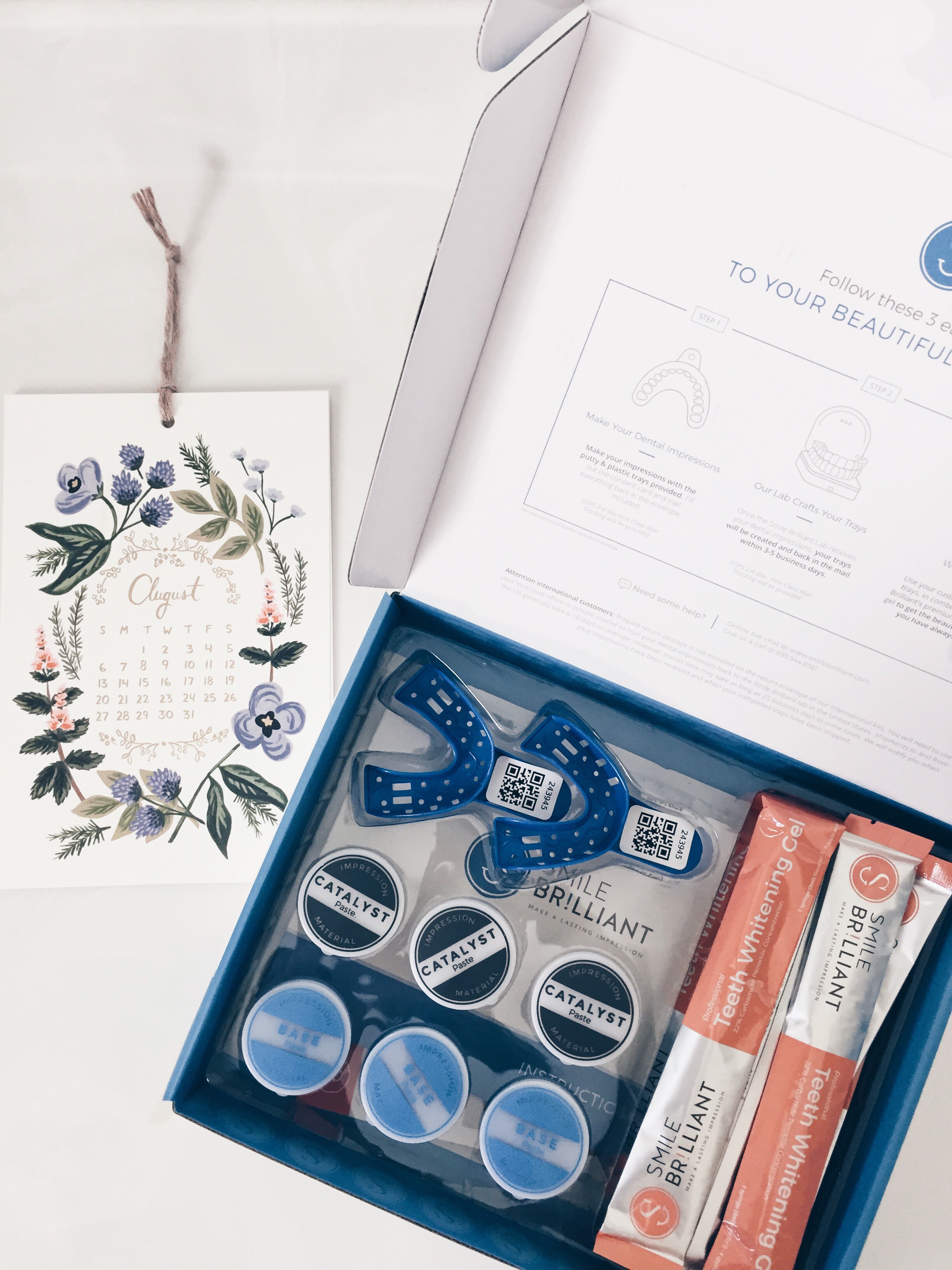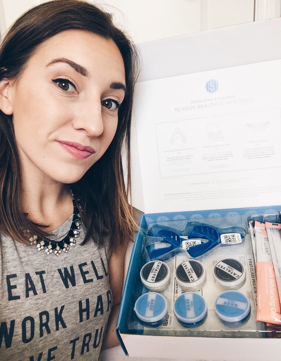 – Smile Brilliant lets you make your OWN trays. This was the most fun! You will use a catalyst and base (1 extra set is included in case you mess up!) to mix together like Play-Doh to take your own impressions. Then send them (with a prepaid envelope) to a professional dental lab and in 3-4 days receive your custom-fitted trays.